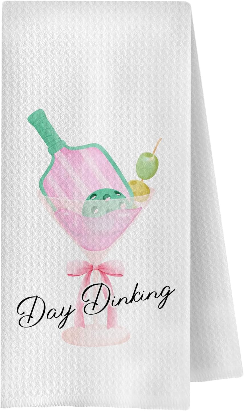 Pink Bow Pickleball Martini Kitchen Towels, Gifts for Pickleball Lovers Dish Tea Towel for Kitchen Bar Cart, Martini Cocktail Lover Gifts Decorative Hand Towels, 16x24 Inches