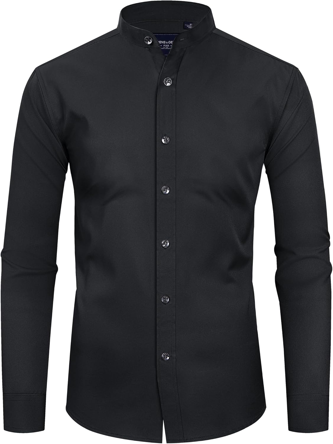 Alimens & Gentle Men's Banded Collar Dress Shirts Wrinkle Free Long Sleeve Mandarin Collar Button Down Shirt
