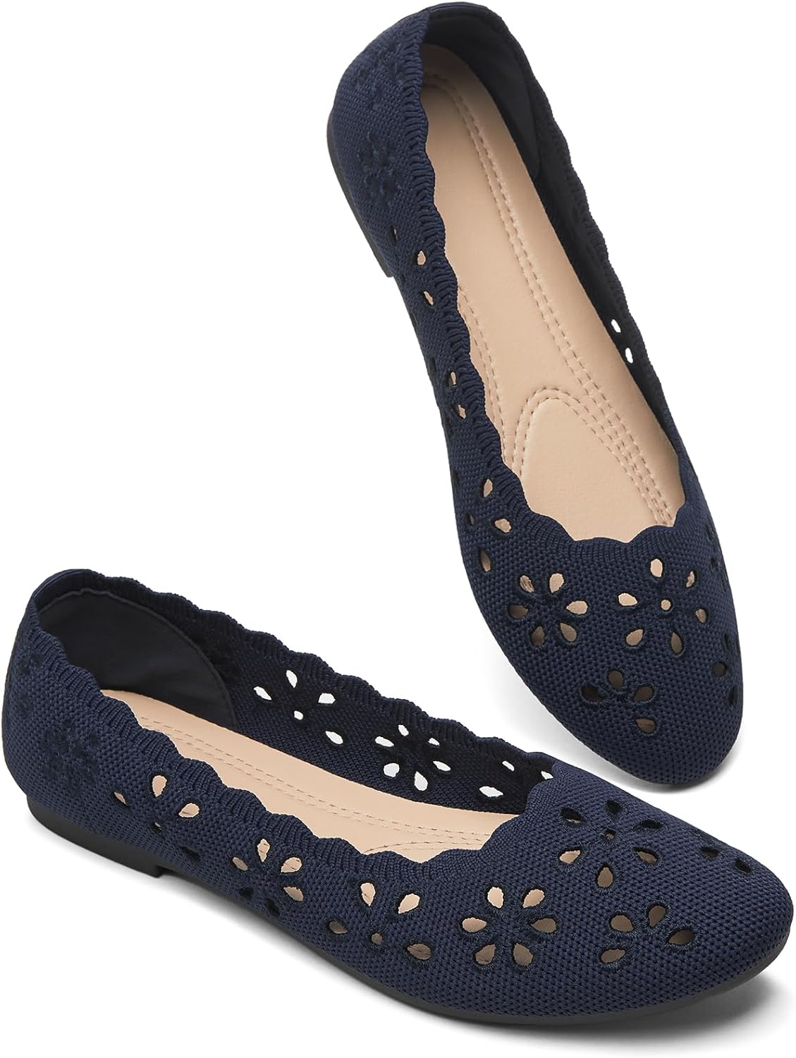 BABUDOG Mesh Ballet Flats Shoes for Women,Womens Flats Dressy Comfortable,Women's Dress Shoes with Flower Eyelets,Slip on Casual Walking Flats