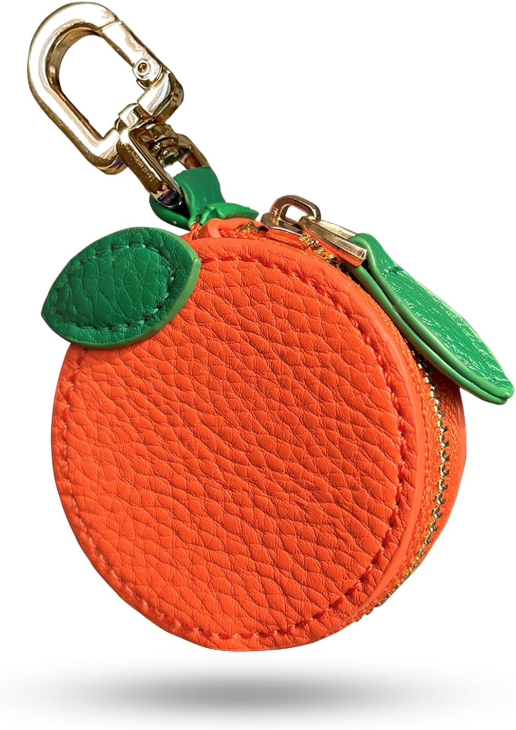 2.36 x 2.36 Inch Orange Fruit Bag Charm Cute Mini Coin Purse Keychain,Mini Leather Coin Pouch Change Purse for Backpack Decoration,Coin Orange Wallet Gifts for Girl Women