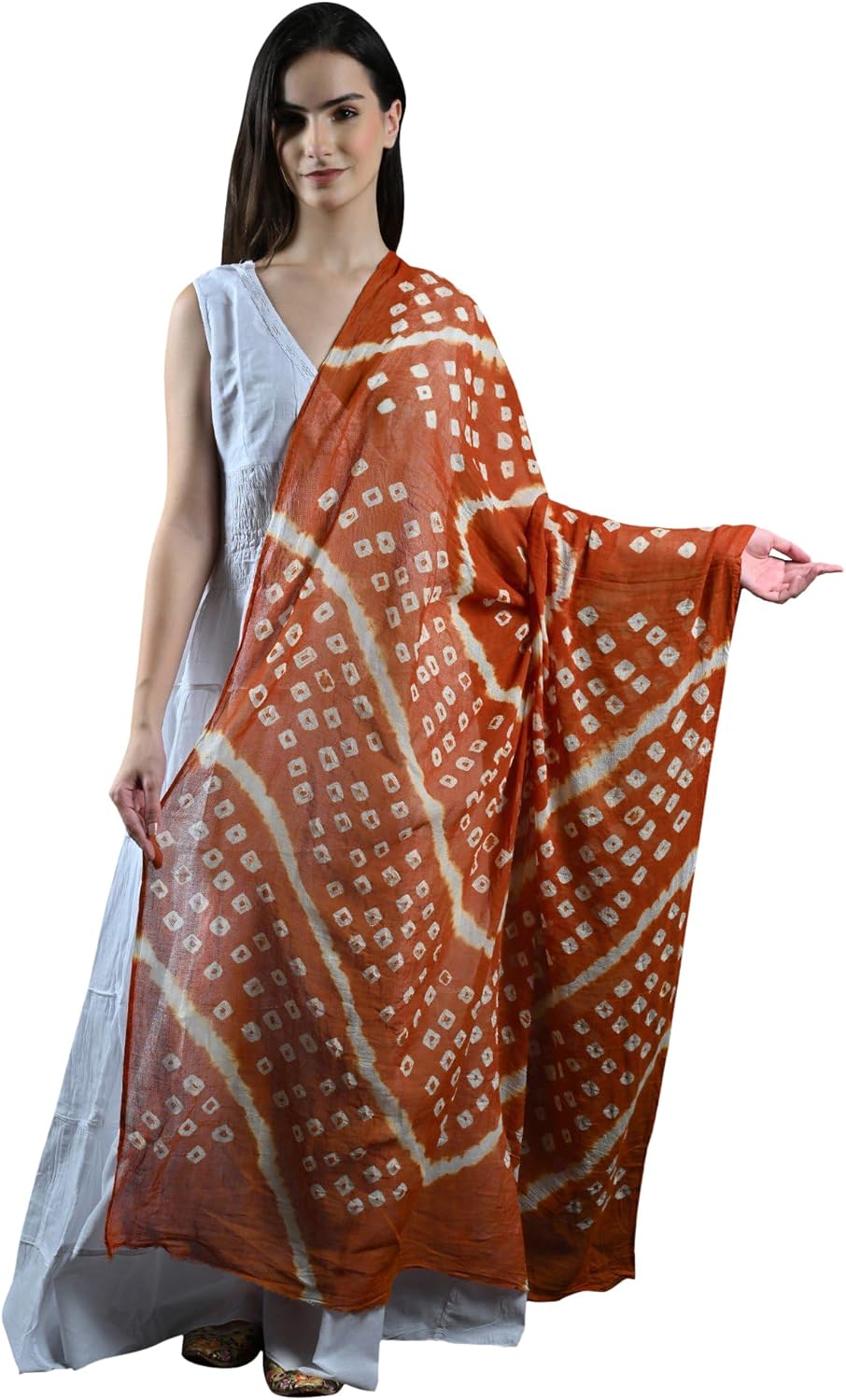 Exotic India Pure Cotton Bandhani Leheria Tie-Dye Dupatta/Chunni For Women's and Girls from Gujarat Cinnamon Stick Red or Brown For Summer