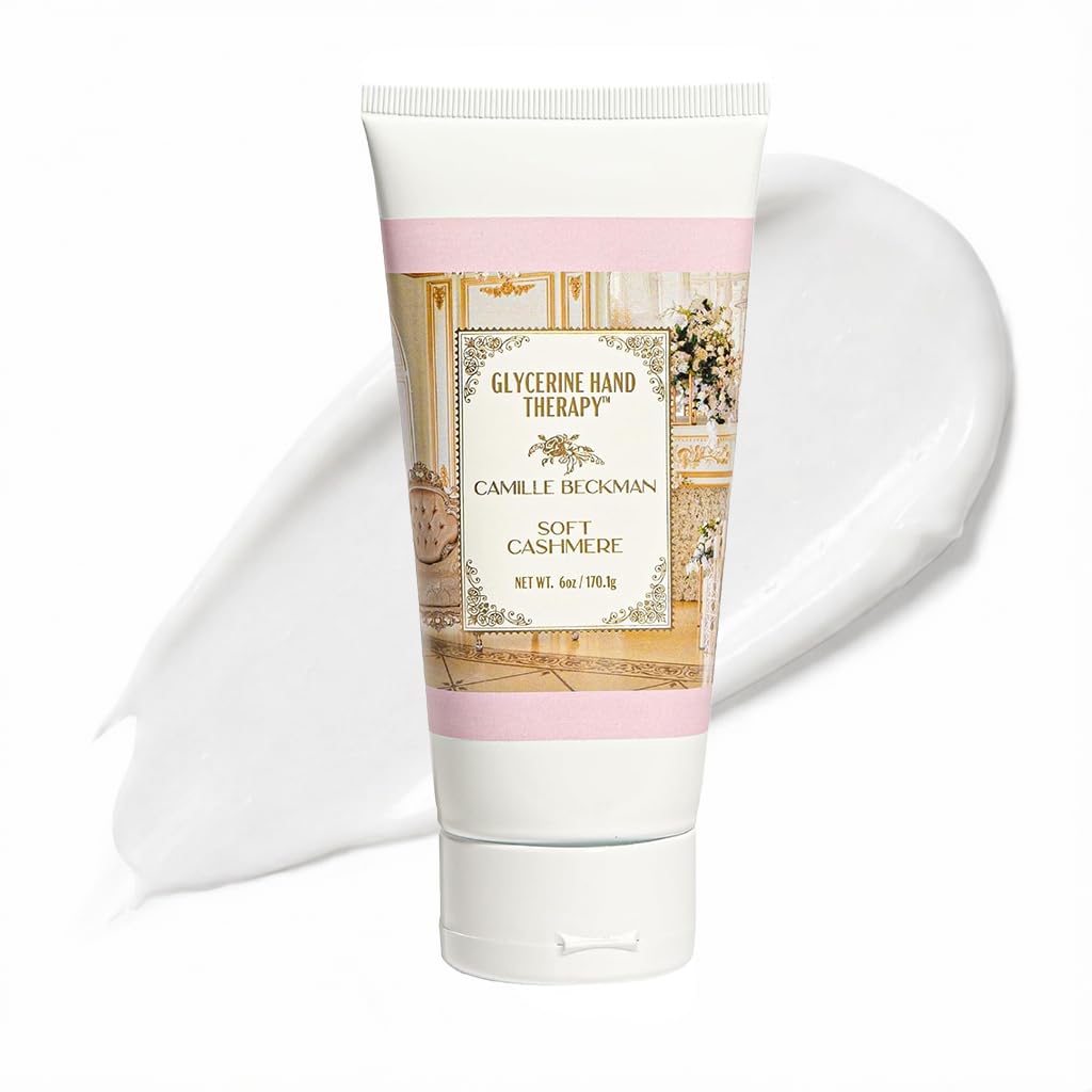 Camille Beckman Glycerine Hand Therapy Cream, Soft Cashmere, Ultra Moisturizing Hand Cream for Dry, Cracked Hands, Non-Greasy, Paraben-Free, Made in USA, 6 Ounce