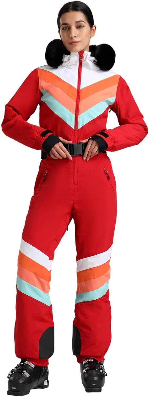 GSOU SNOW Ski Suit Women Snowsuit One Piece Snowboarding Waterproof Windproof Jumpsuit for Outdoor Sports