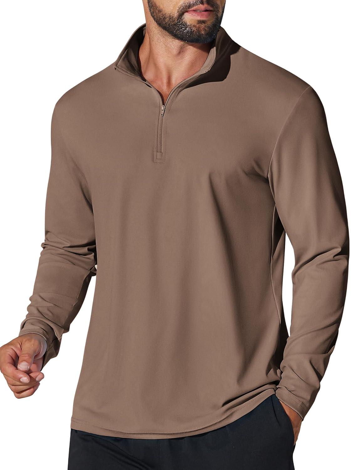 COOFANDY Mens Quarter Zip Pullover Athletic Shirt Long Sleeve Sun Protection Shirt Golf Zip Up Lightweight T Shirts for Man