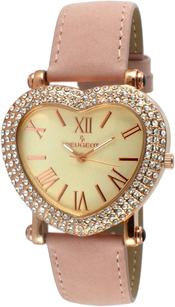 Peugeot Women's Heart Shaped Rose Gold Crystal Watch with Blush Pink Nubuck Suede Band