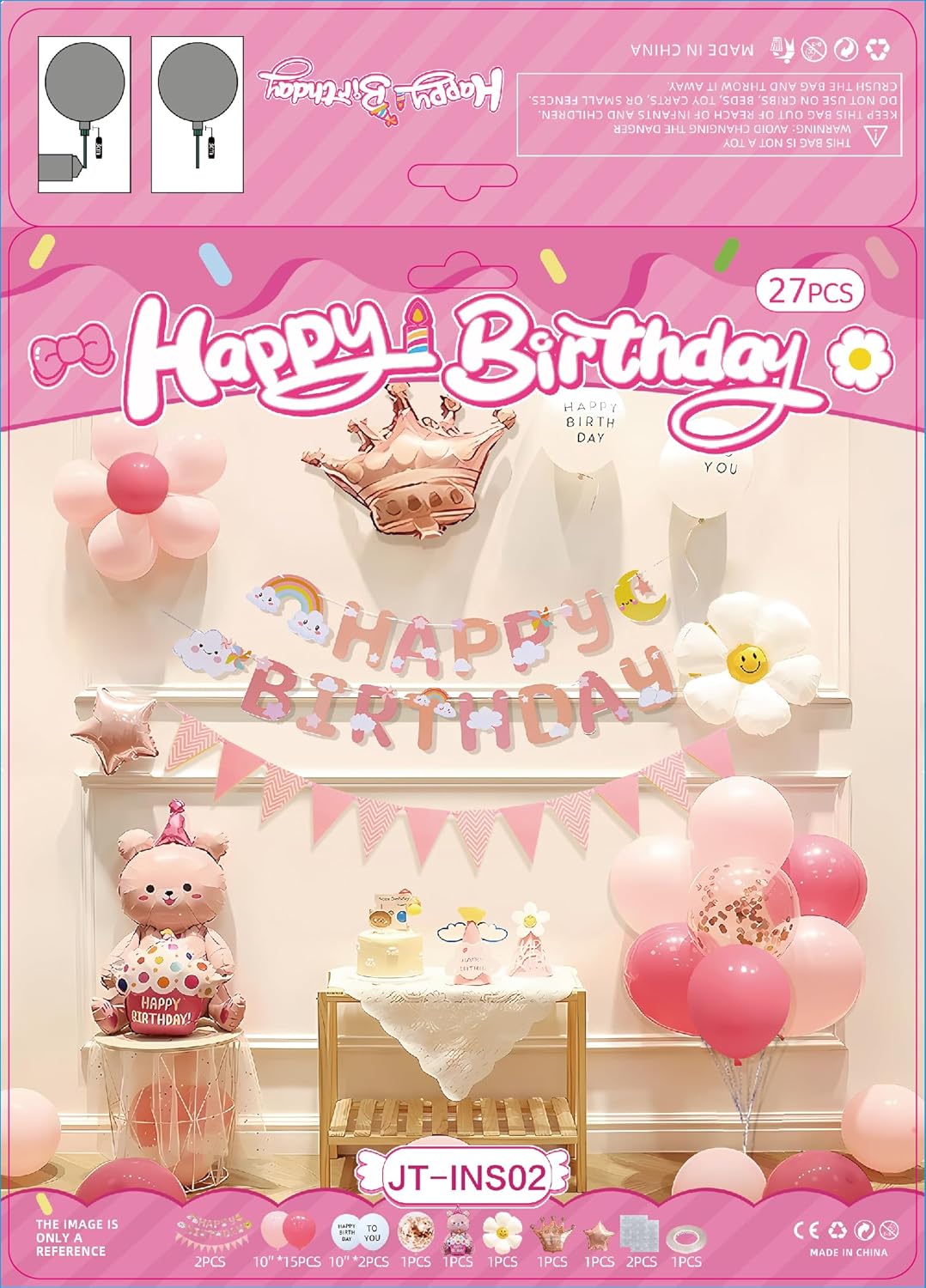Party Supplies, 27 PCS Birthday Decorations Set Include Banner, Balloons, Stickers, Backdrops for Boys Girls Themed Party (Pink princes)