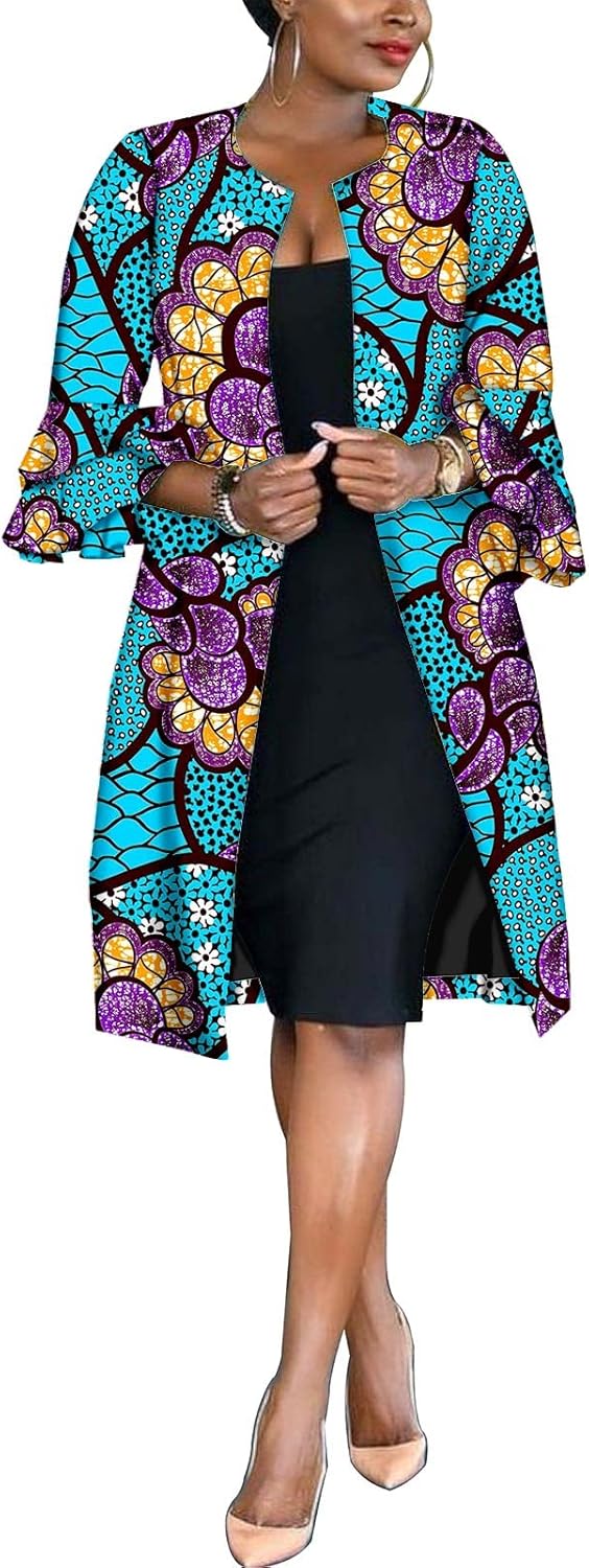 Dashiki African Clothes Women Outfits Ankara Print Long Jacket Double Layer Ruffles Sleeve Coat Customized Clothes