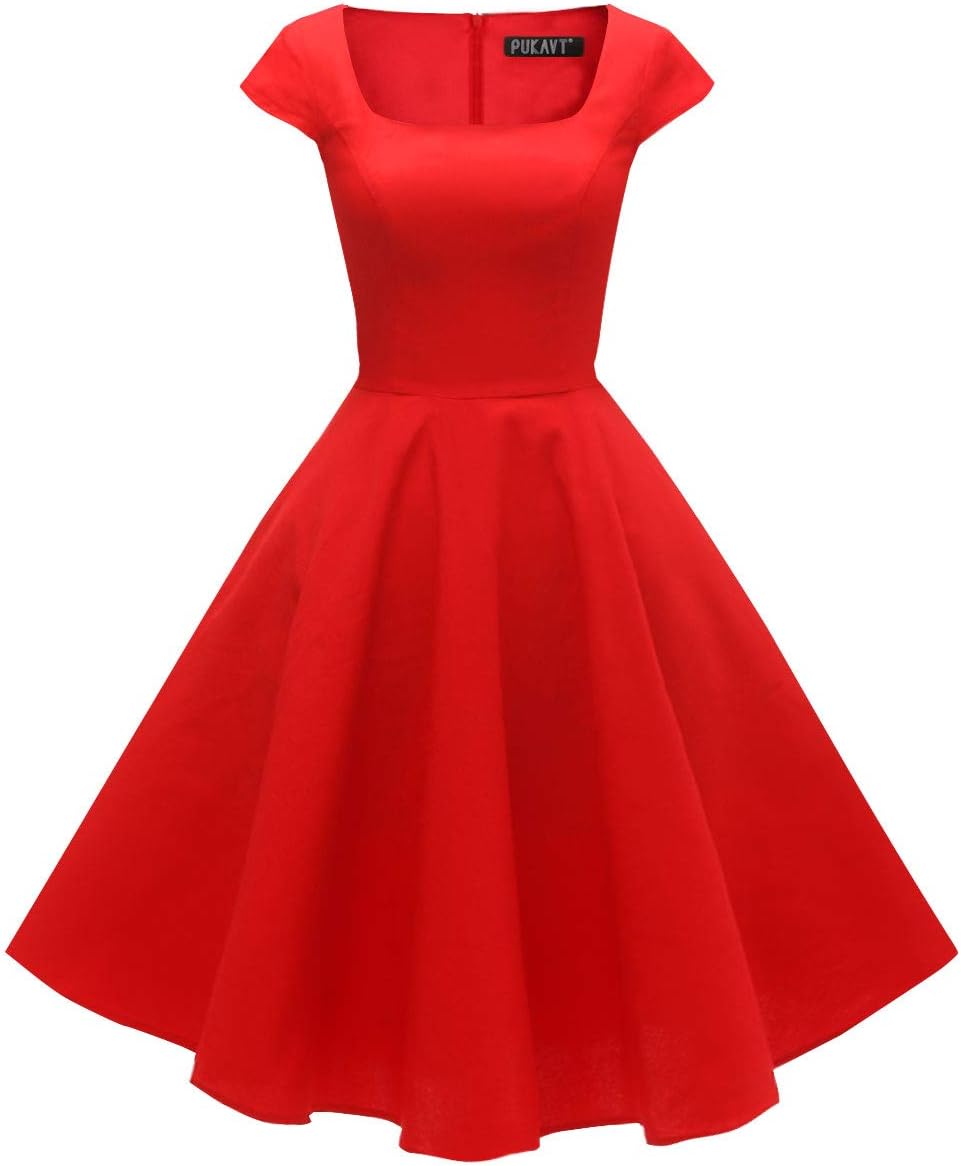 PUKAVT Women's Cocktail Party Dress Cap Sleeve 1950 Retro Swing Dress with Pockets