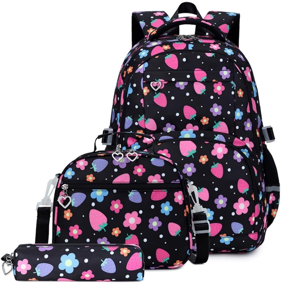 - Large capacity for easy organization:The school bag measures 33 (L)*20 (W)*45 (H) cm/13 (L)*7.8 (W)*17.7 (H) inche, comes with a cute strawberry pencil pocket and an insulated lunch box, the cute girl's school bag has multiple pockets and compartments to cultivate your child's organisation habits.