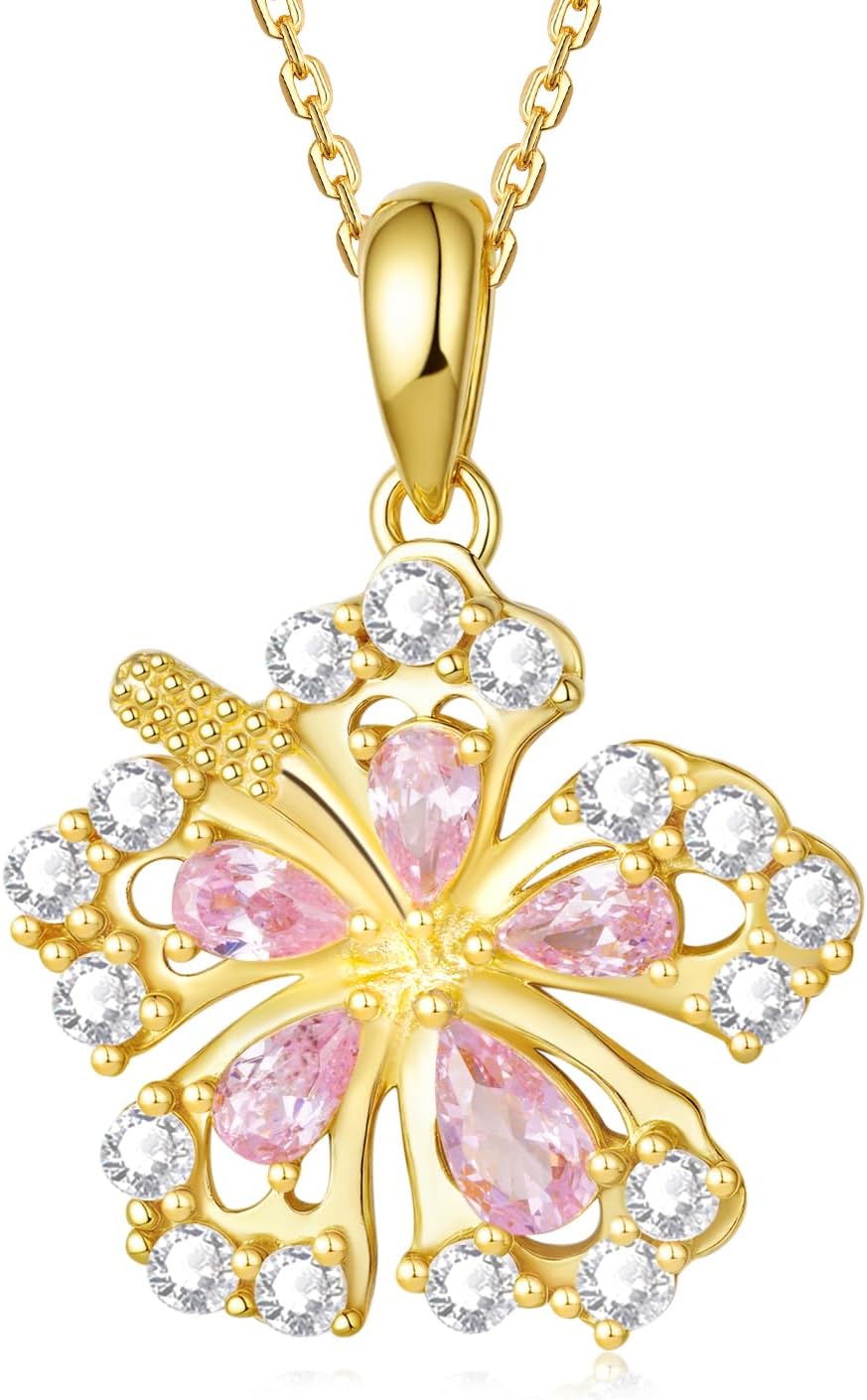 925 Sterling Silver Hibiscus Necklace for Women - Hawaiian Flower Pendant Dainty Hypoallergenic Floral Jewelry Birthday Gift