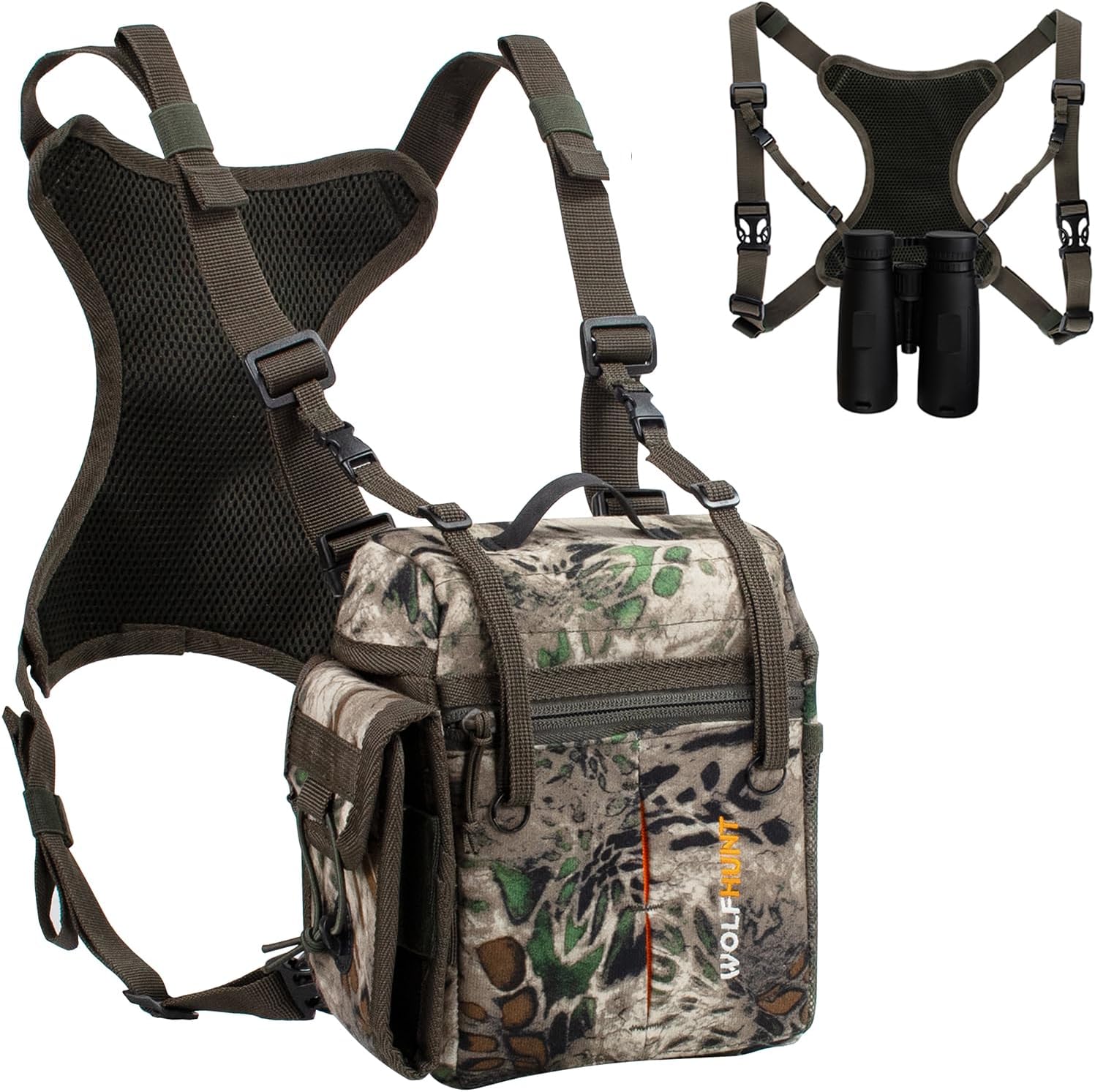 WOLFHUNT Prym1 Camo Binoculars Chest Pack with Rangefinder Pouch, Binoculars Harness Bags Magnetic Opening Bino Case Triple-Use Mode, Hunting Chest Pack W/MolleSystem & Lens Cleaning Cloth