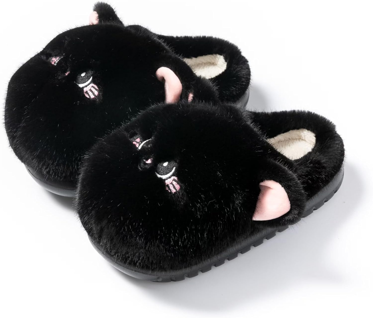 Cute Cat Slippers for Women - Fuzzy Warm Animal Slippers with Non-Slip Thick Sole for Winter Indoor Comfort