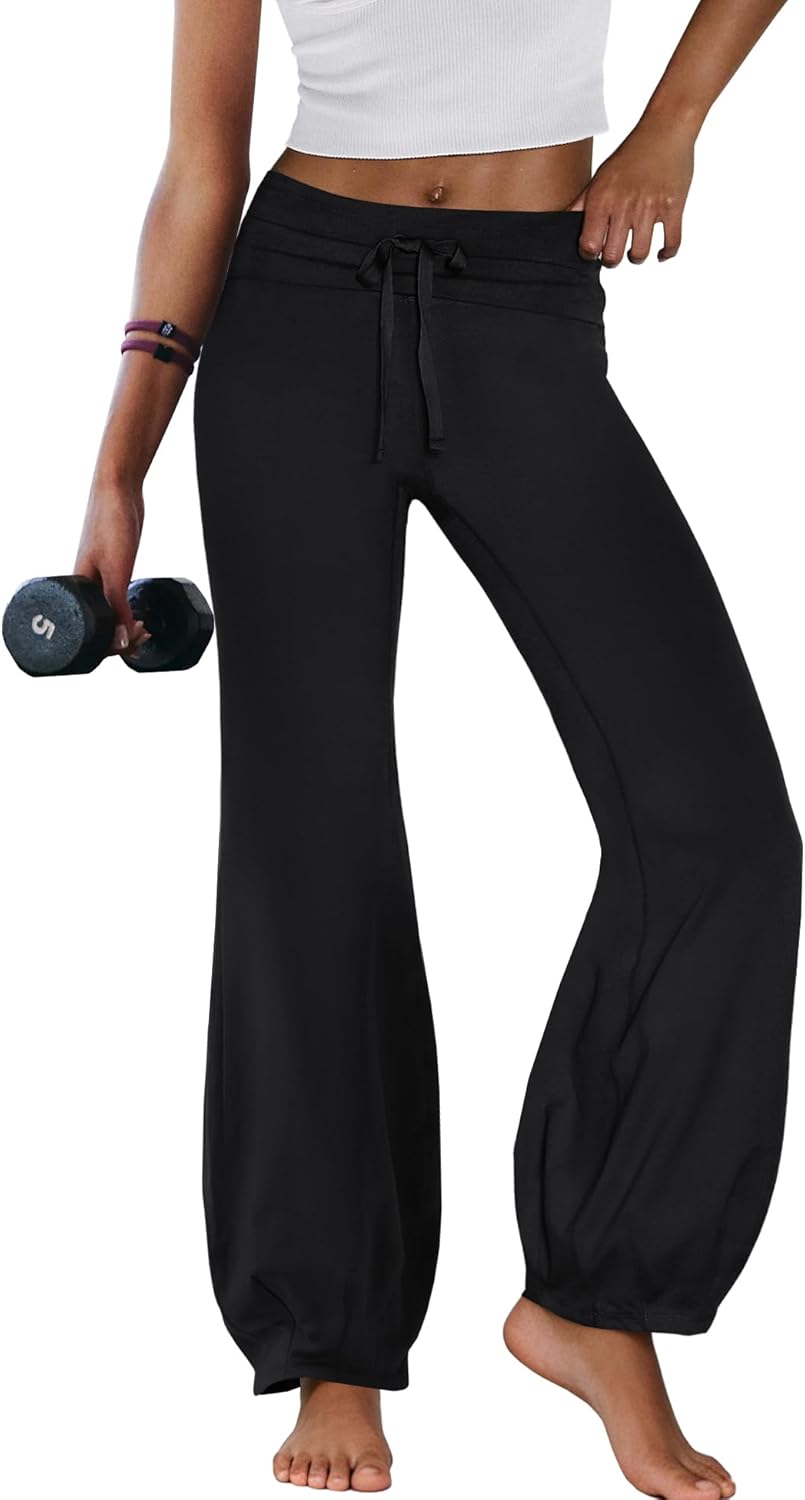 Nirovien Womens Wide Leg Yoga Pants Fold Over Flare Leggings High Waisted Athletic Workout Pants Gym Leggings