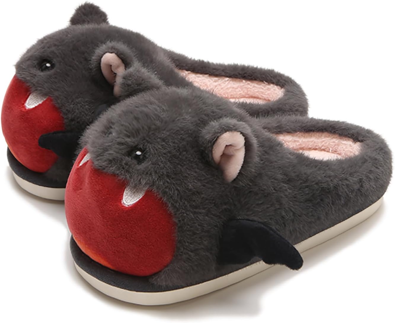 Cozy Winter Bat Plush Slippers for Men and Women - Cartoon Fleece-Lined House Shoes with Thick Non-Slip EVA Sole, Cute Animal Couple Gifts for Christmas, Birthday