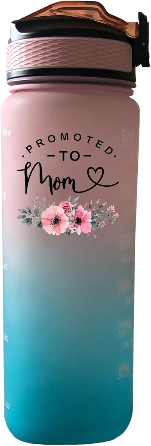 Promoted To Mom 32 OZ Drinking Water Bottle with Times to Drink and Straw, Motivational with Carrying Strap, Leakproof BPA & Toxic Free, Ensure You Drink Enough Water for Fitness Outdoor