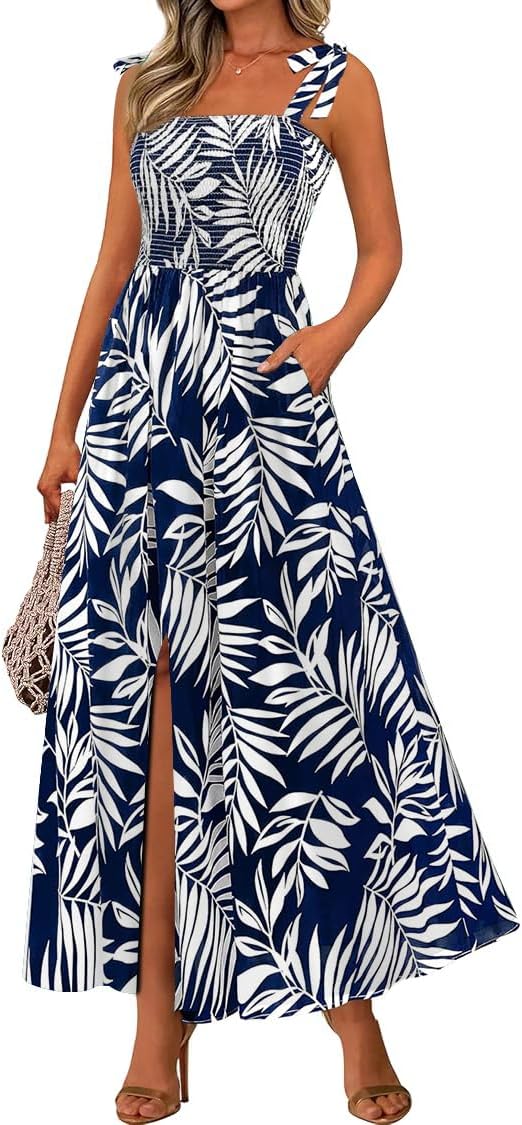 HWP Floral Dress for Women Summer Boho Sleeveless Long Sun Dresses Spaghetti Strap A Line Flowy Beach Midi Dress