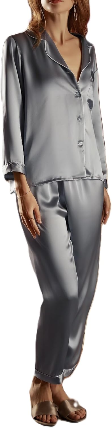 Ginell Tranquility Series Women's Silk Pajamas Set 100% Mulberry Silk Solid Colors Button Front 2 Piece PJ Set