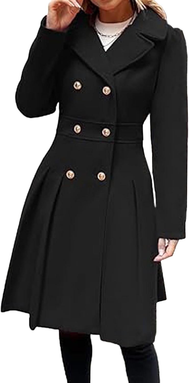 SEMATOMALA Women's Double Breasted A Line Trench Coat Notched Lapel Wool Blend Pea Coats Jacket with Pockets