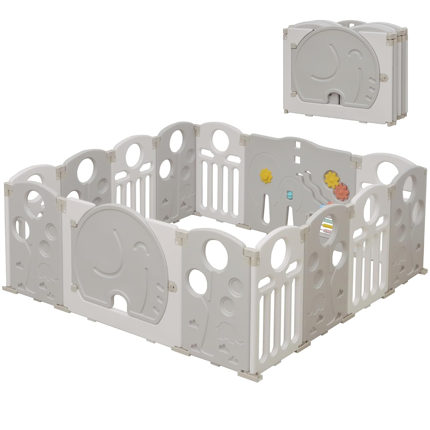 Baby Playpen, 14-Panel Foldable Play Pen for Babies and Toddlers, Indoor Outdoor Baby Fence with Sensory Play Panel, Adjustable Shape Activity Play Center, Portable & Easy Assemble