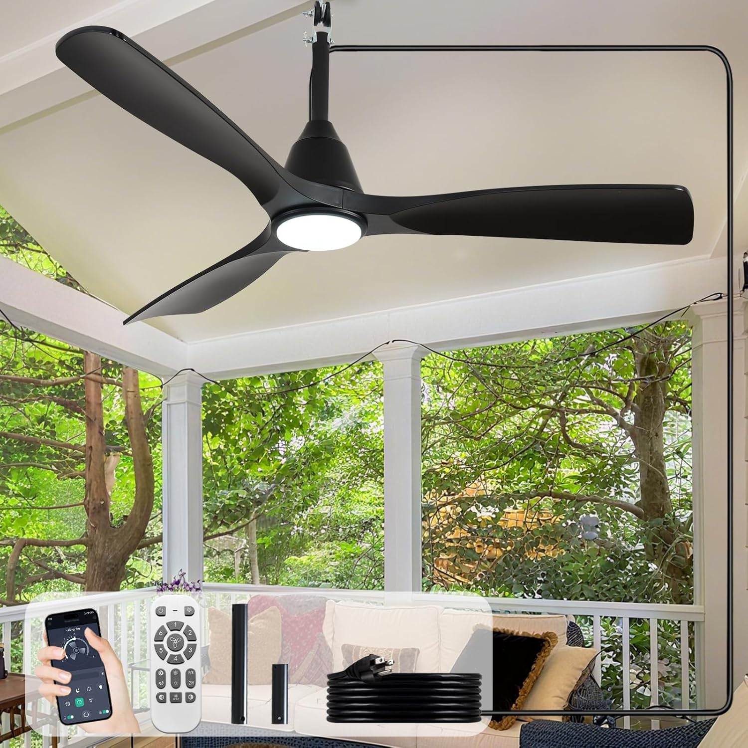 - Weather-Resistant Design: The IP65 weather-resistant design makes this ceiling fan suitable for both indoor and outdoor use. Crafted with high-quality materials, it withstands moisture, dust, and temperature fluctuations. The sealed motor and reinforced blades protect against rust and corrosion. Perfect for year-round comfort. 42-inch propeller design fan ideal for your patio, porch, gazebo, backyards, living room, bedroom, patio, garage, or open spaces. With a dimmable LED light, black ceiling fan enhances your room's lighting and comfort all