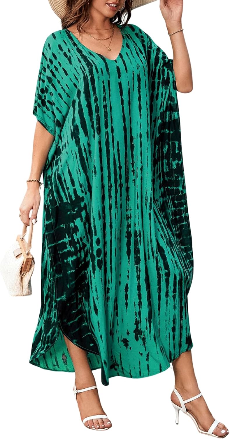 Kaftan for Women Plus Size Bathing Suit Cover up Batwing Dress Loose fit Moroccan Caftan mumu Dresses for Women