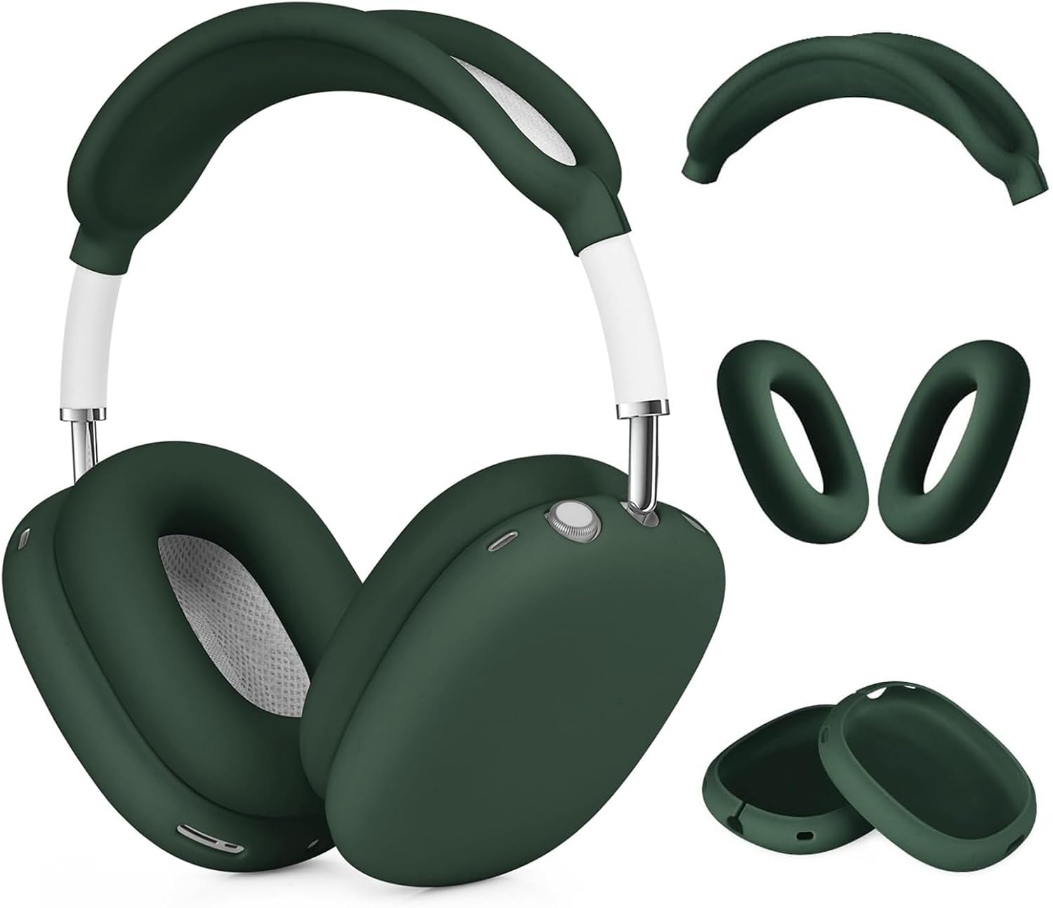 Silicone Case Cover for AirPods Max Headphones,Anti-Scratch Ear Cups Cover/Ear Pad Case Cover/Headband Cover 3 in 1 Accessories Silicone Protector for Apple AirPods Max(Dark Green)