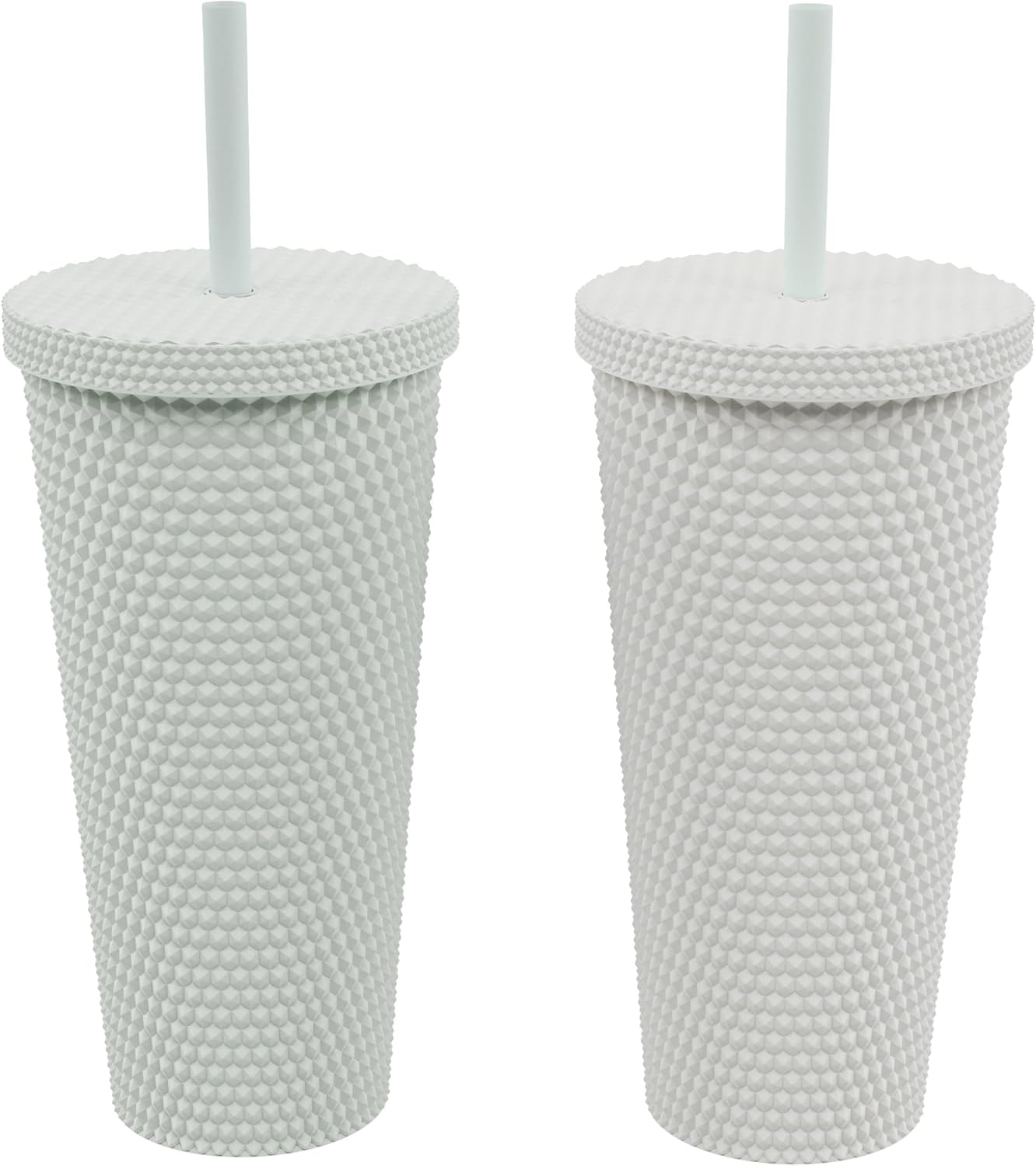 Copco 22oz Studded Insulated Tumblers with Straw and Lid, Set of 2, Acrylic Reusable Cold Drink Tumblers, Spill-Resistant, BPA-Free, Travel-Friendly, Cupholder Compatible (Aqua/Mint)
