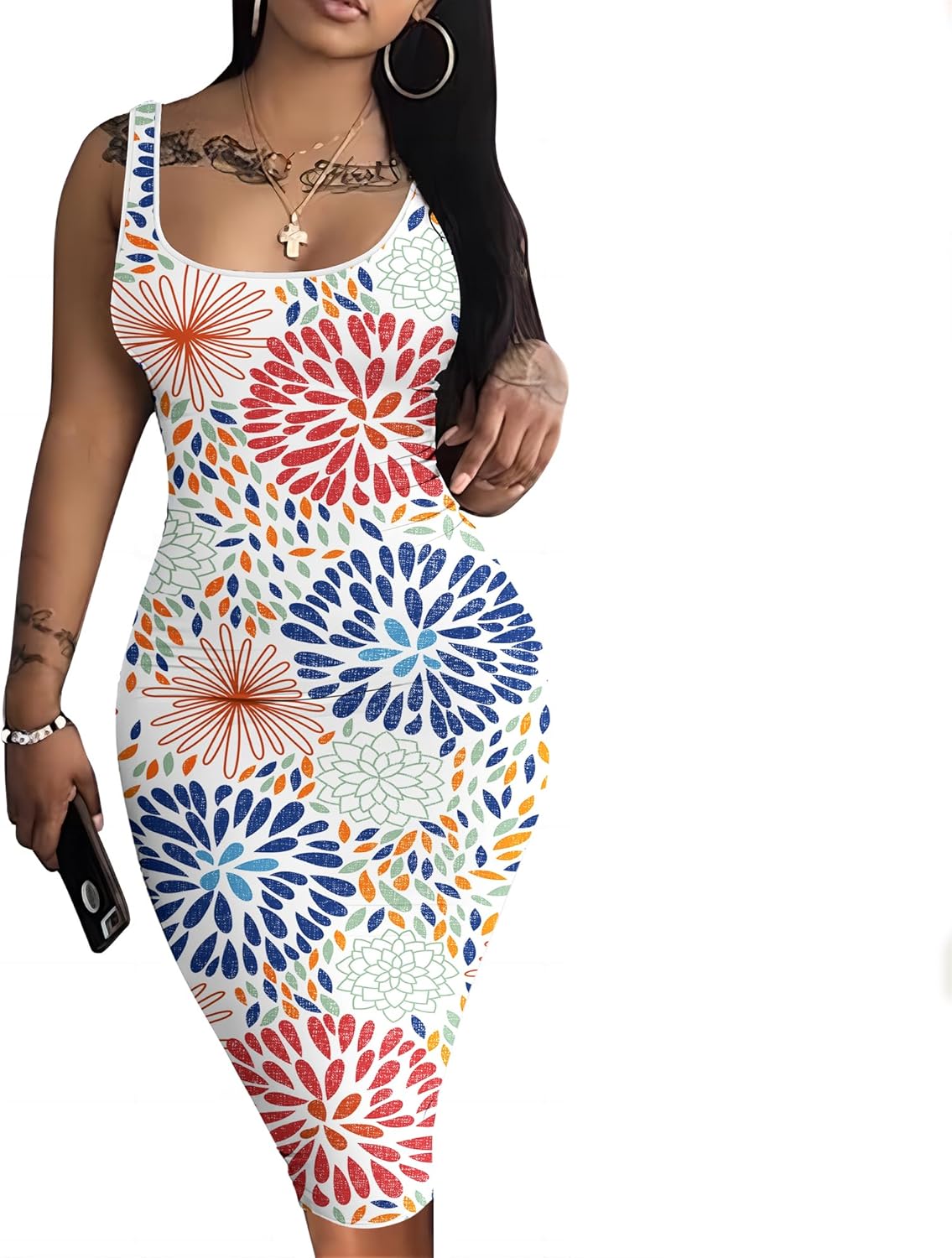 Nimsruc Women Casual Sexy Tank Top Bodycon Dress Summer Pencil Sleeveless Basic Midi Club Dresses