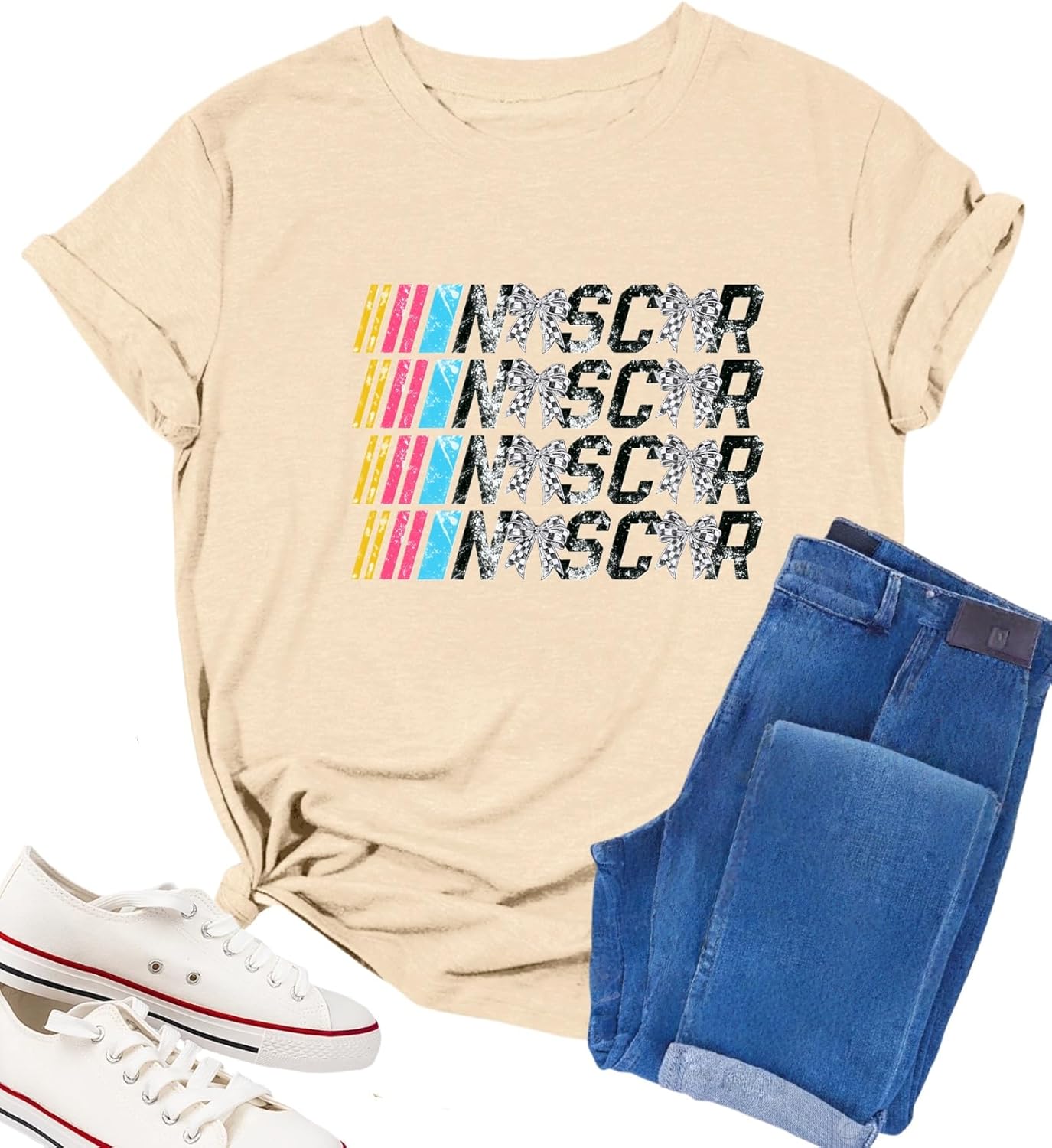 Racing Shirts for Women Start Your Engines Shirts Car Tshirts Checkered Flag Graphic Race Lover Raceday Short Sleeve Top