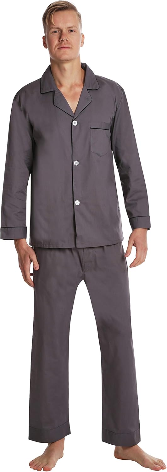 EVERDREAM Men’s Pajama Set, Solid Lightweight Botton Down Pajamas for Men