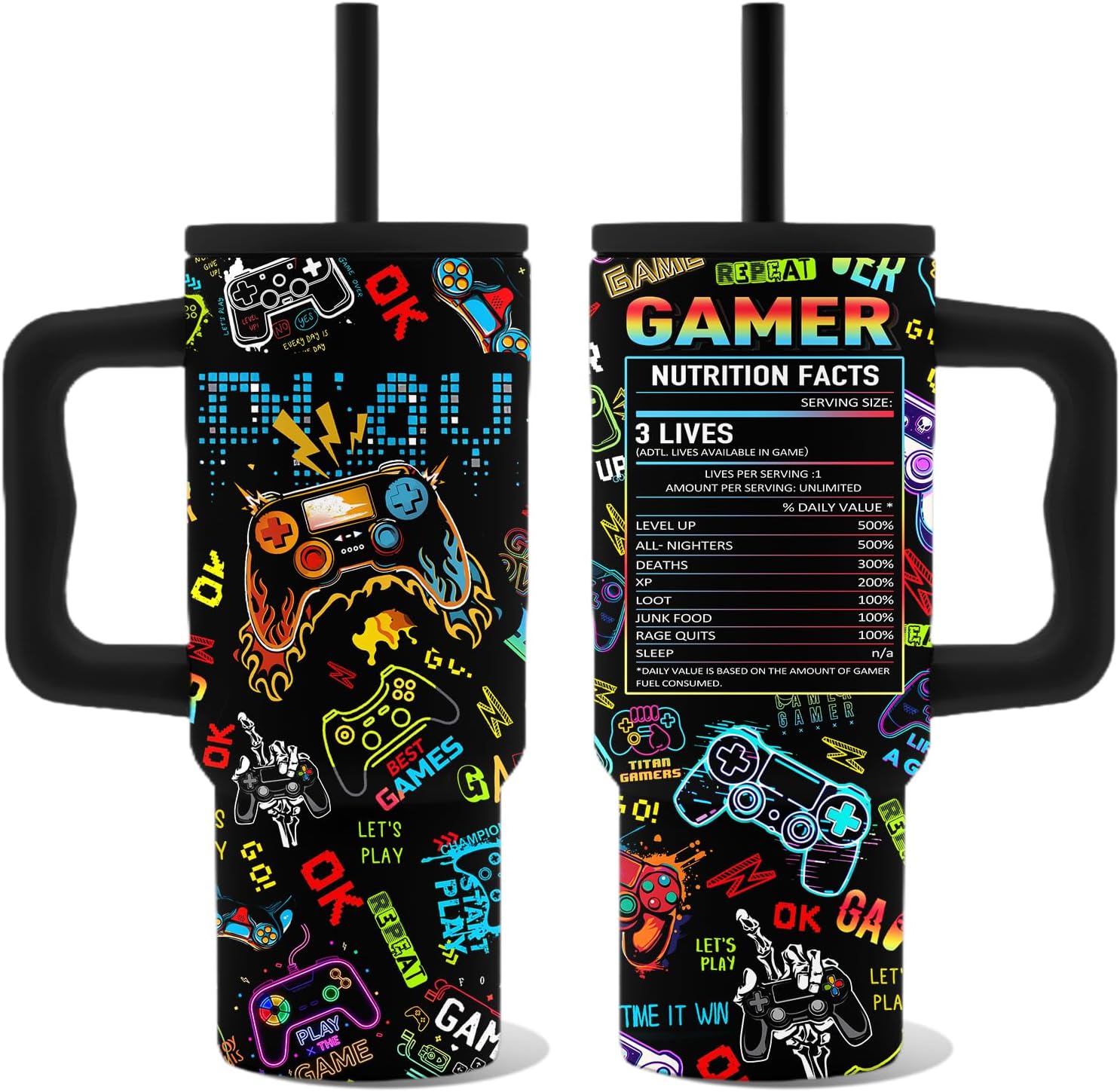 - Gamer Gift for Men Boys: This tumbler with handle features brightly colored video game patterns that turn daily drinking into an exciting moment, and it can be given as a birthday gift for gamer men, gaming boys and game fans