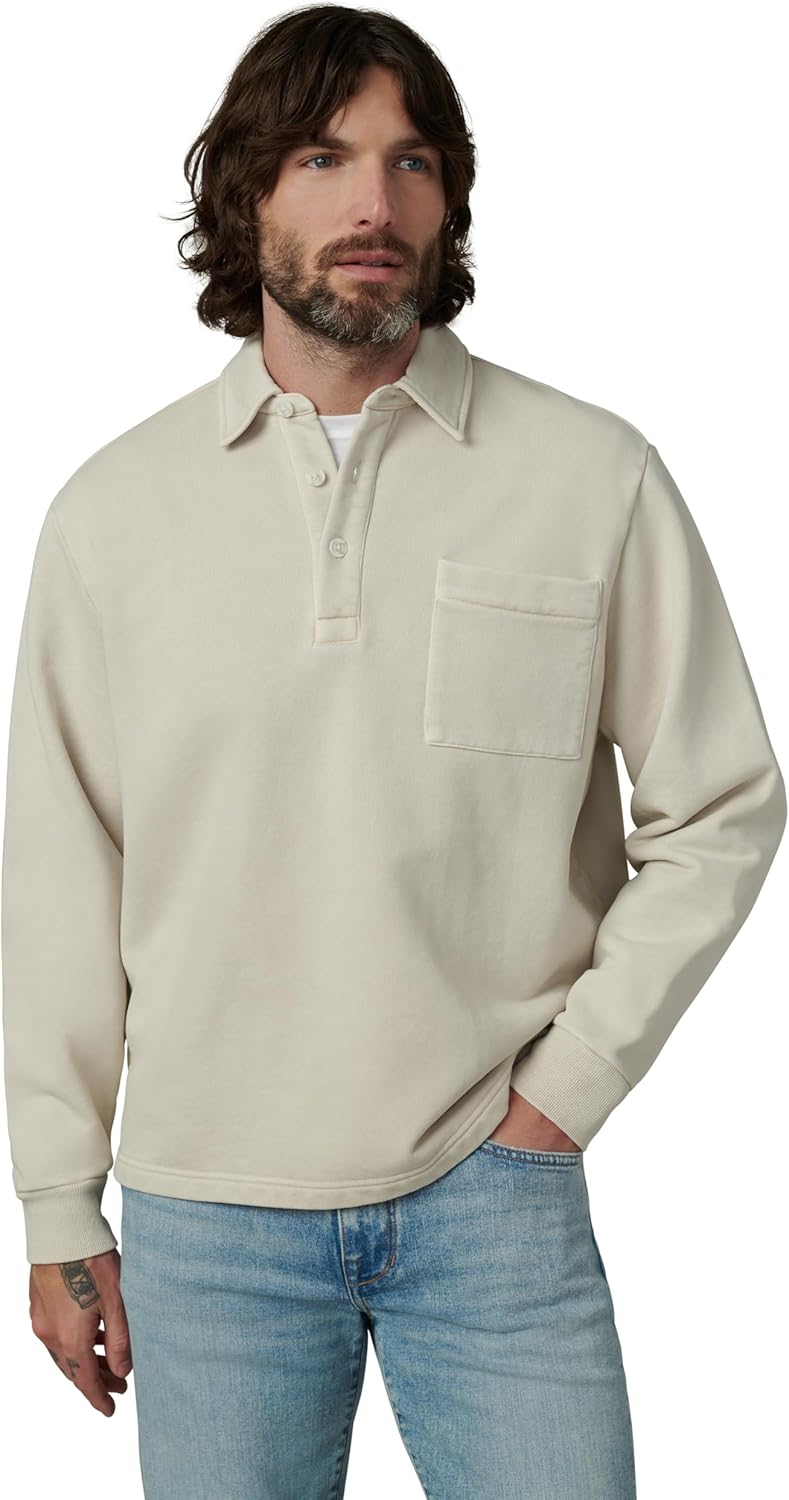Joe's Jeans Men's Polo Long Sleeve Sweatshirt, Natural, Small