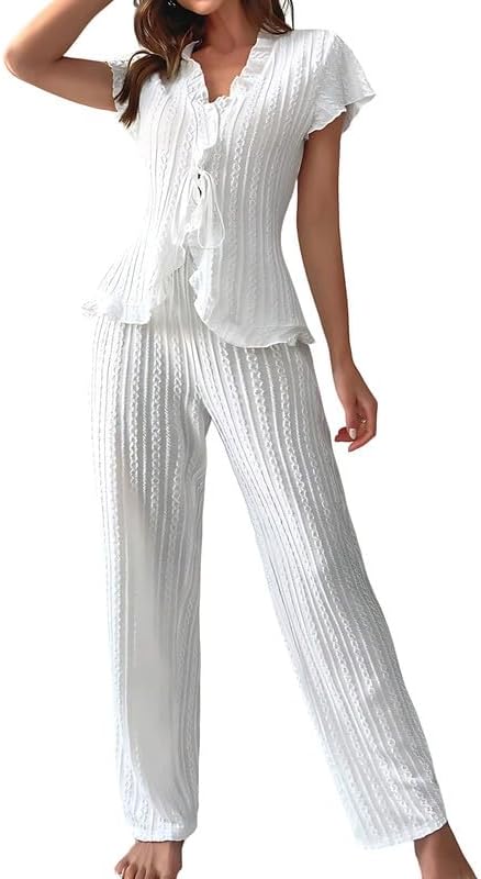Women's Pajama Sets 2 Piece Lounge Sets for Women Tie Front Top Loungewear Soft&Comfortable Sleepwear S-XL