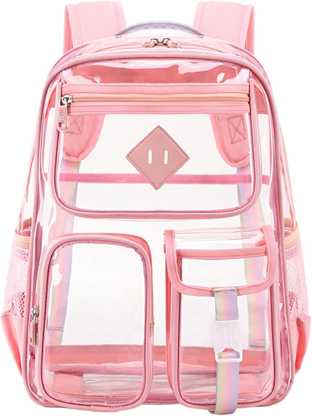 - 【Material】Clear backpacks for school is made of high-quality thickened 0.5mm PVC material, making it durable and long-lasting.Thickened material is waterproof and anti-freeze cracking, and a variety of colors are available (such as purple, pink, green, black).