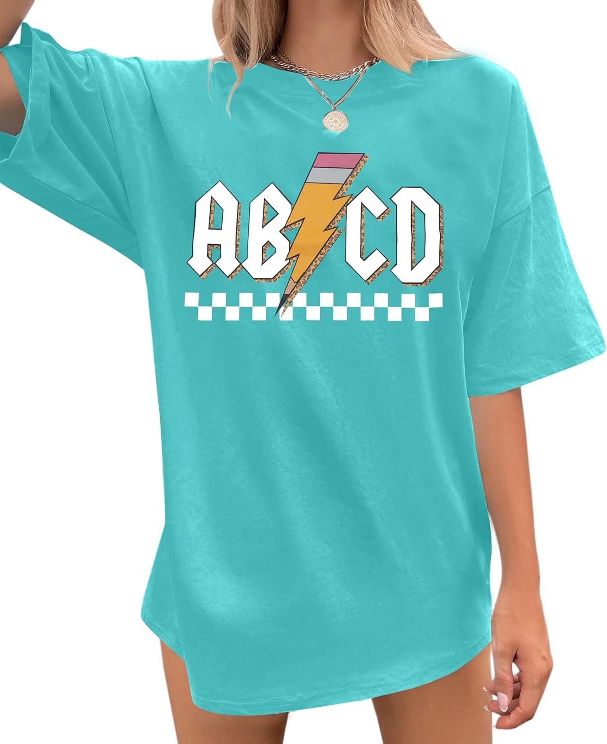 MAXIMGR Teacher Shirts Women Funny Rock'n Roll Shirt Life ABCD Pencil Graphic Short Sleeve Tee Top