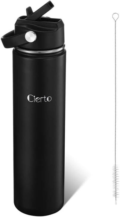 Cierto 24 oz Insulated Water Bottle with Straw, Stainless Steel Double Wall Vacuum Water Bottles with Leakproof Lid for Men Women, School Boys Girls, Fits in Car Cup Holder, Gym, Office, BPA Free -B
