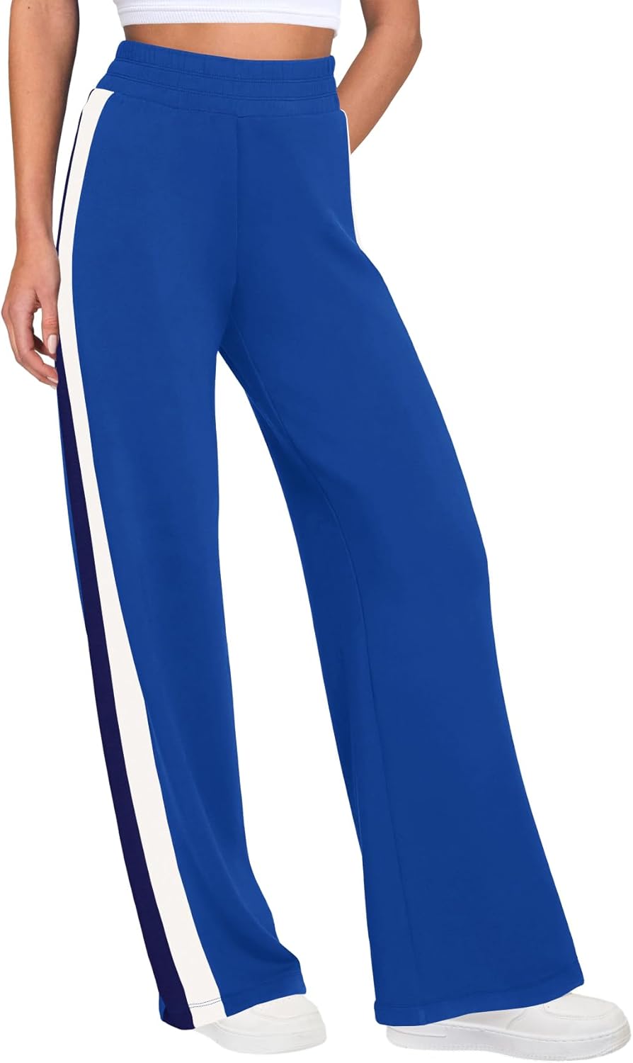 SENSERISE Women Sweatpants Color Block Wide Leg Track Pants High Waisted Side Striped Pants with Pockets