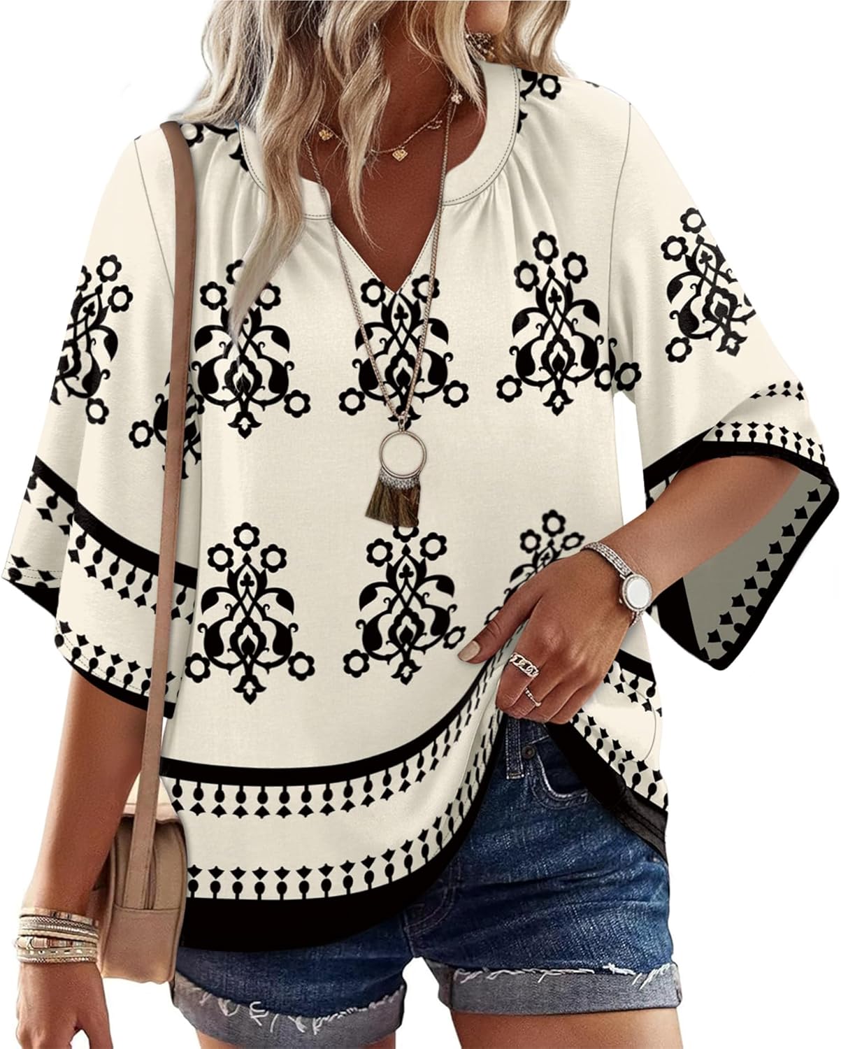 WIHOLL Womens Tops Dressy Casual Summer Spring V Neck Work Tops Boho Maternity Blouses Cruise Flowy Shirts Tunic 2026 Clothes Floral Apricot M