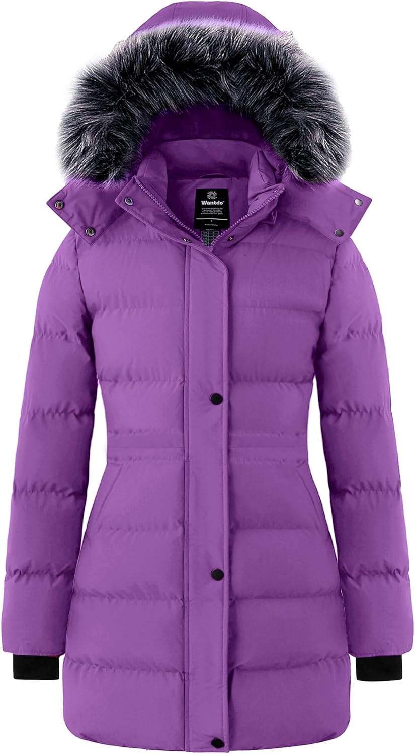 wantdo Women's Winter Coats Quilted Long Puffer Jacket Waterproof Hooded Coat