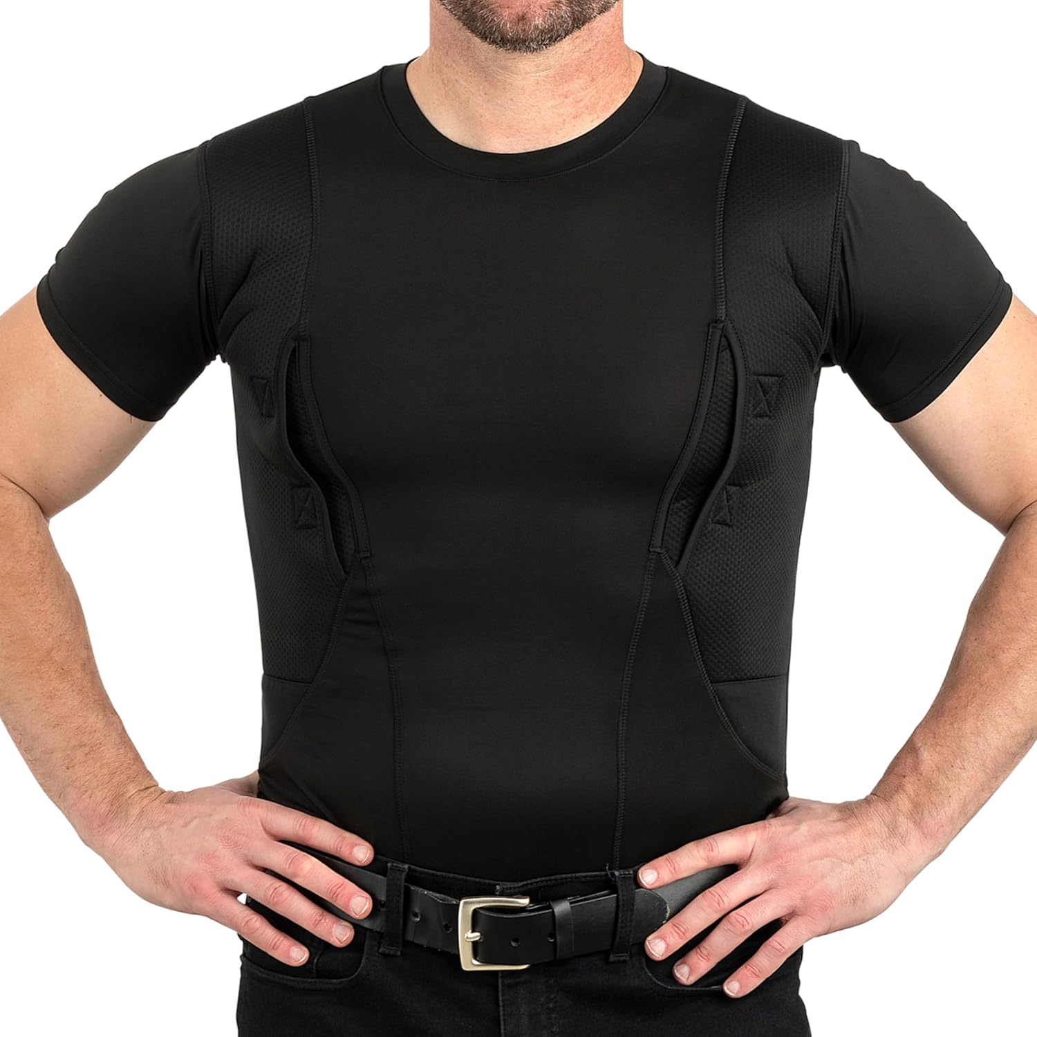 Concealed Carry Holster Shirt | Secure Hook & Loop Pocket with Large Storage | Mens Crew