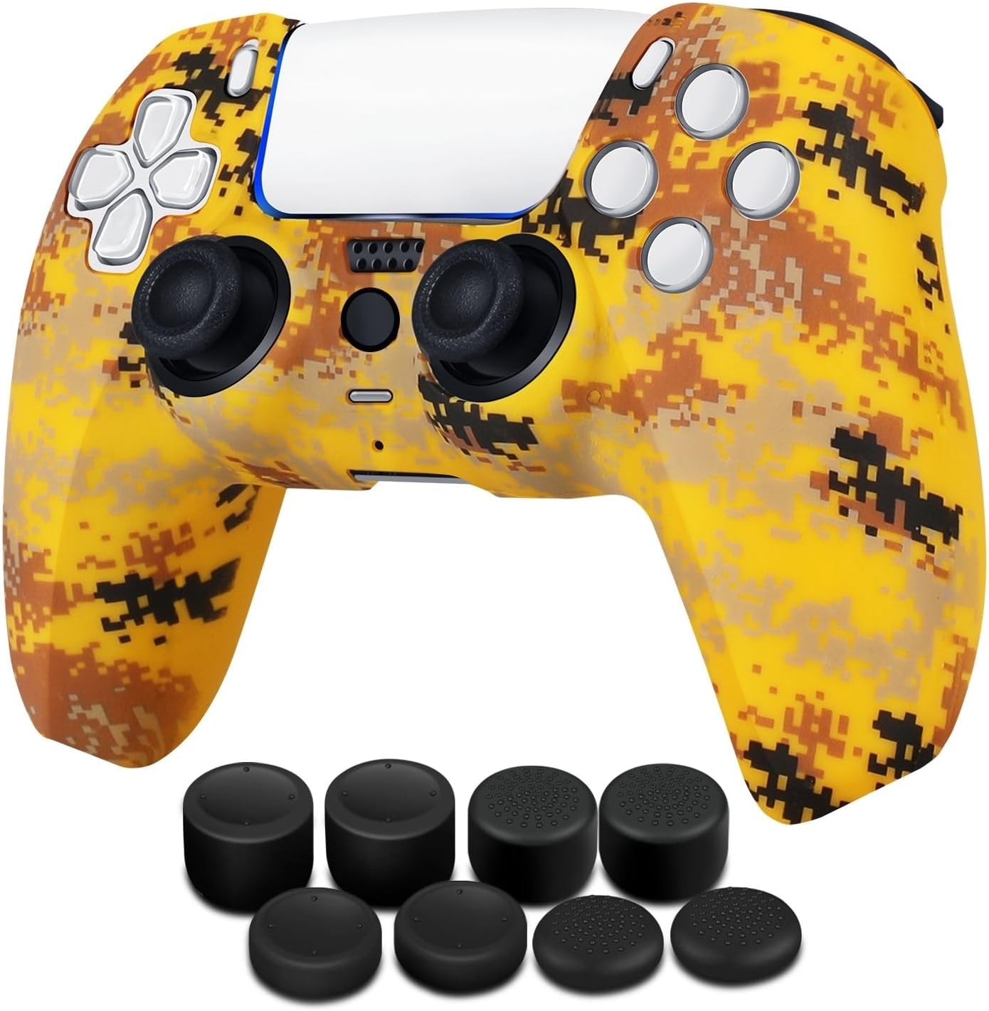 TNP Controller Case for PS5 Silicone Controller Skin for Dualsense Cover + 8 Pro Thumb Grips Set Sony PlayStation 5 Skins Accessories Camo Yellow with Ergonomic Textured Grip