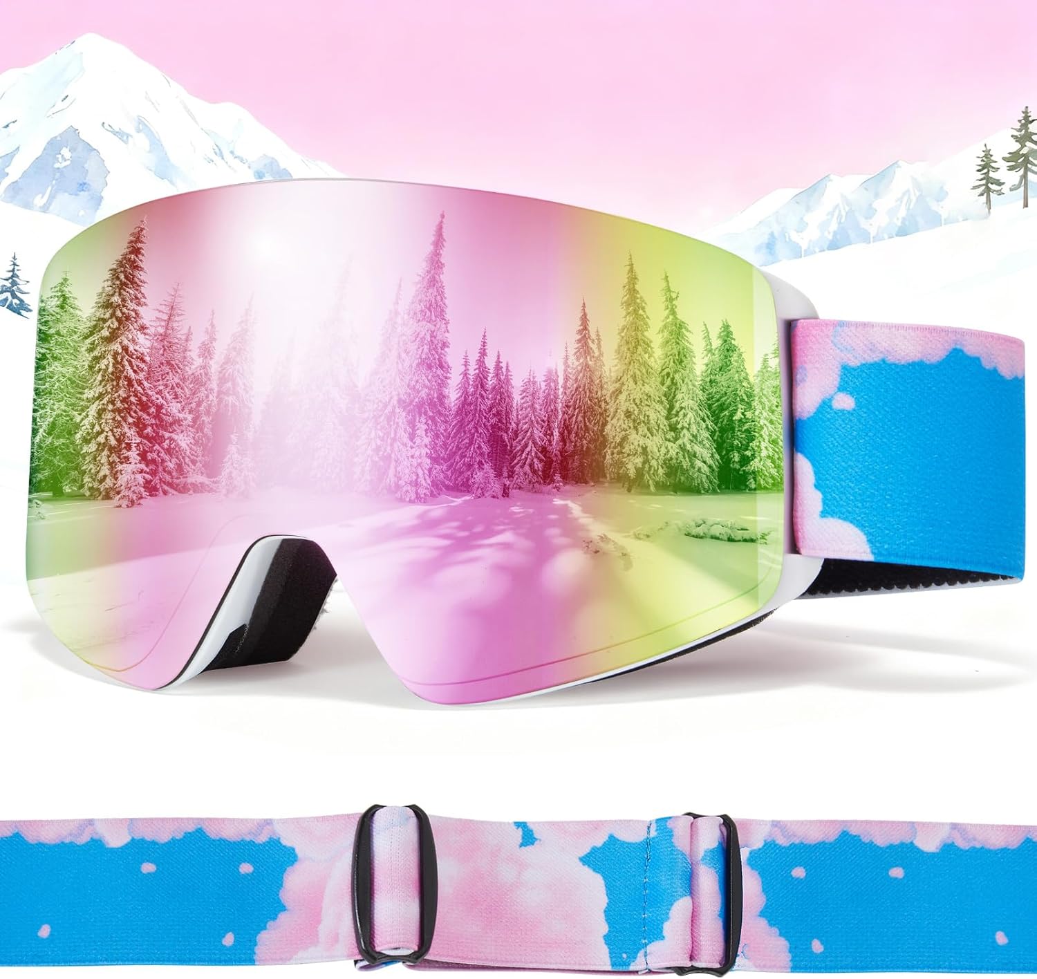 Kids Ski Goggles, Magnetic Child Snowboard Goggles OTG Snow Sports Goggle for Boys Girls UV400 Anti Fog