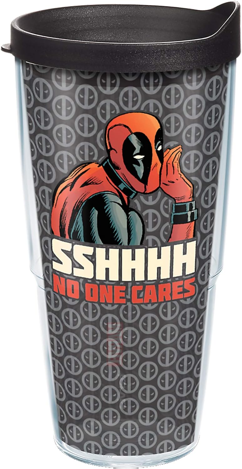 Tervis Marvel Deadpool Shhh No One Cares Made in USA Double Walled Insulated Tumbler Travel Cup Keeps Drinks Cold & Hot, 24oz, Classic