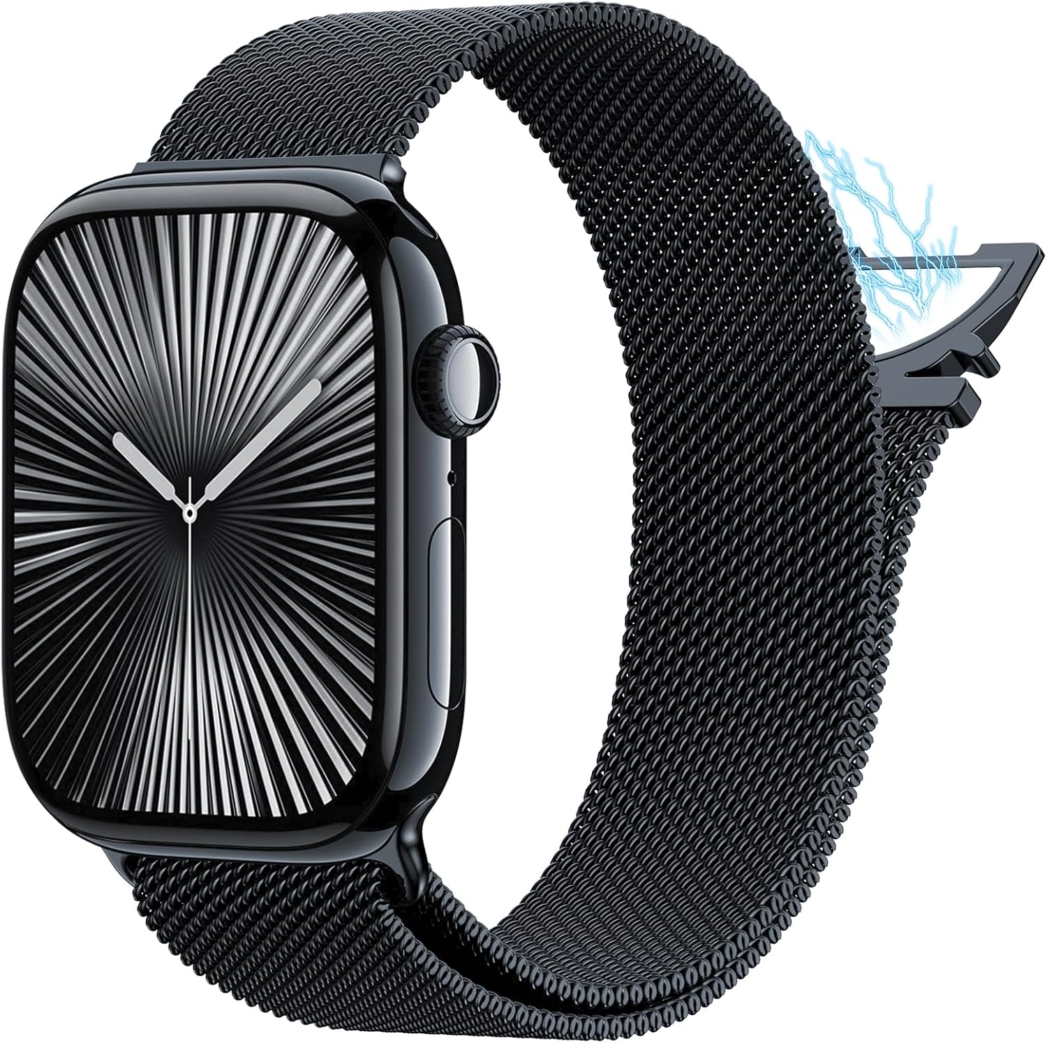 - 【Wider Band and Larger Magnetic Clasp】: With a magnetic clasp dedign, our series 10 46mm band for apple watch has stronger magnetism and never worry about slipping off. Better suitable for all kinds of light sports and outdoor sports. You can adjust it by the tiniest amount and get a perfect fit. After adjusting the wrist size, simply place the magnetic clasp close to the metal band to get an automatic adsorption.