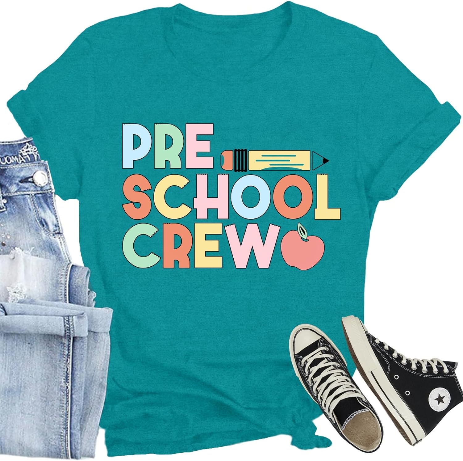 Women Preschool Teacher Shirts Cute Preschool Crew T-Shirts Back to School Teacher Life Tee Tops