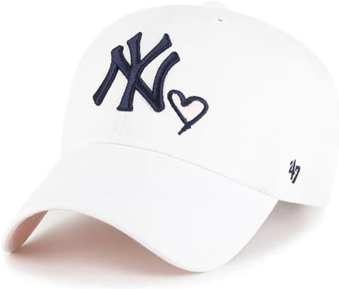 47 Brand MLB New York Yankees Navy Pink Unisex Heart Icon Clean Up Adjustable Baseball Cap Dad Hat Adult One Size Fits All