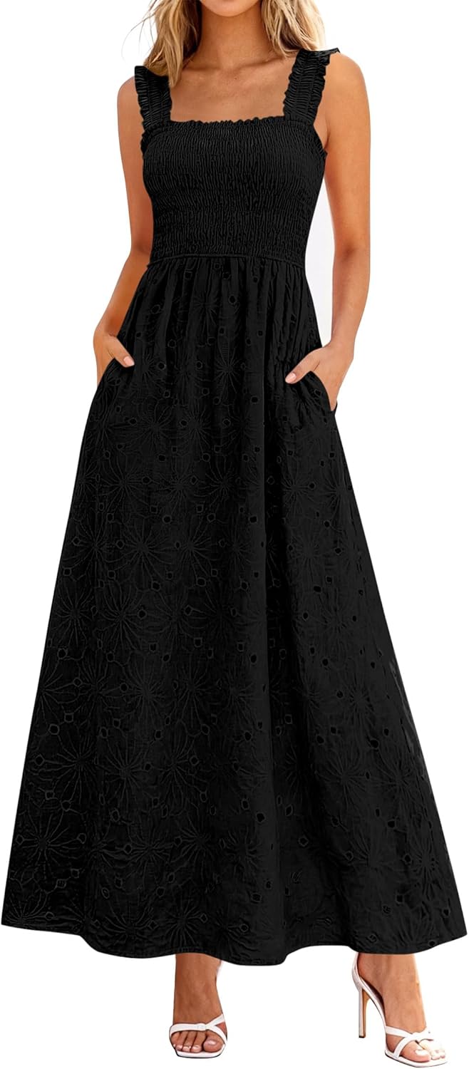 KIRUNDO Summer Lace Dress Vacation Outfits for Women 2026 Wedding Guest Dresses Maxi Beach Boho Sleeveless Cotton Sundress