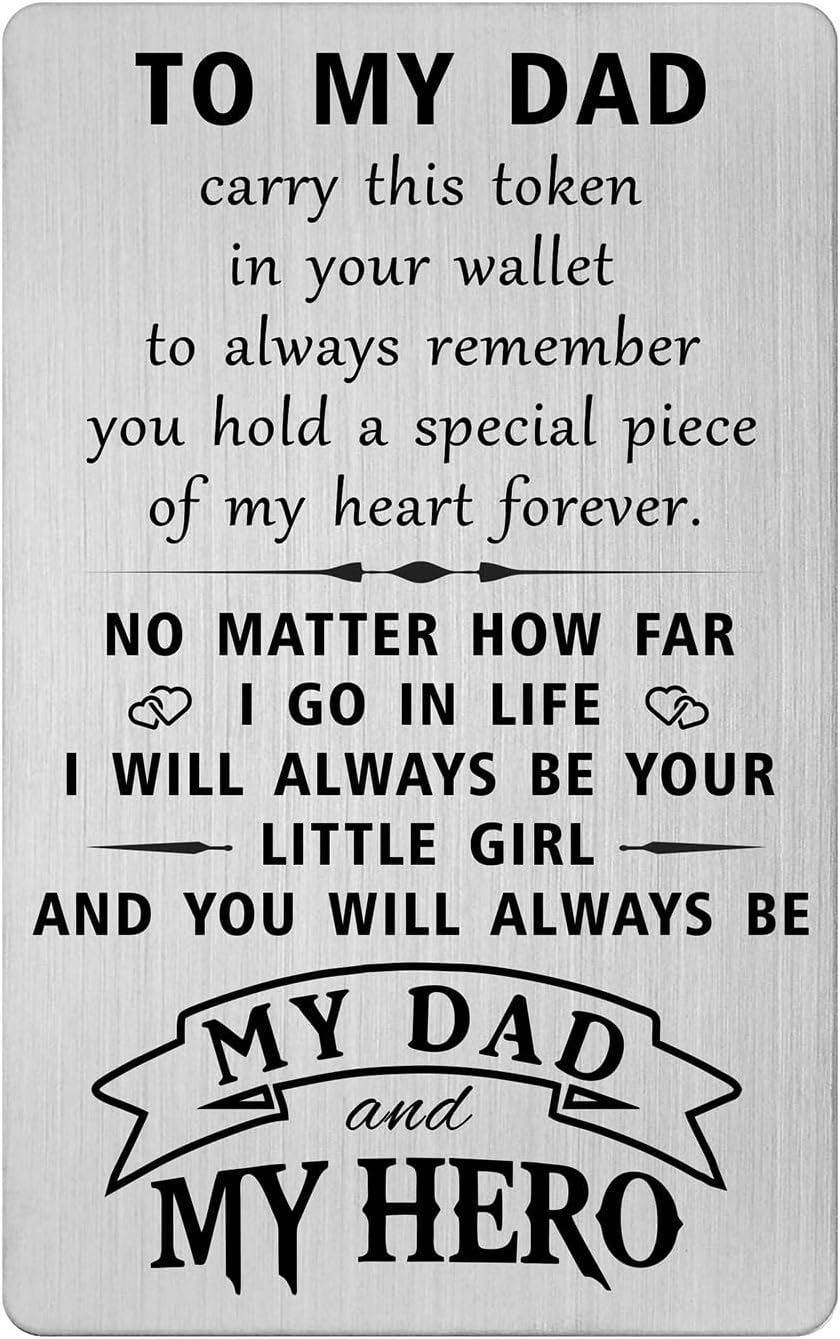 - To My Dad Cards from Daughter- Carry this token in your wallet to always remember you hold a special piece of my heart forever. No matter how far i go in life. I will always be your little girl and you will always be my dad and my hero