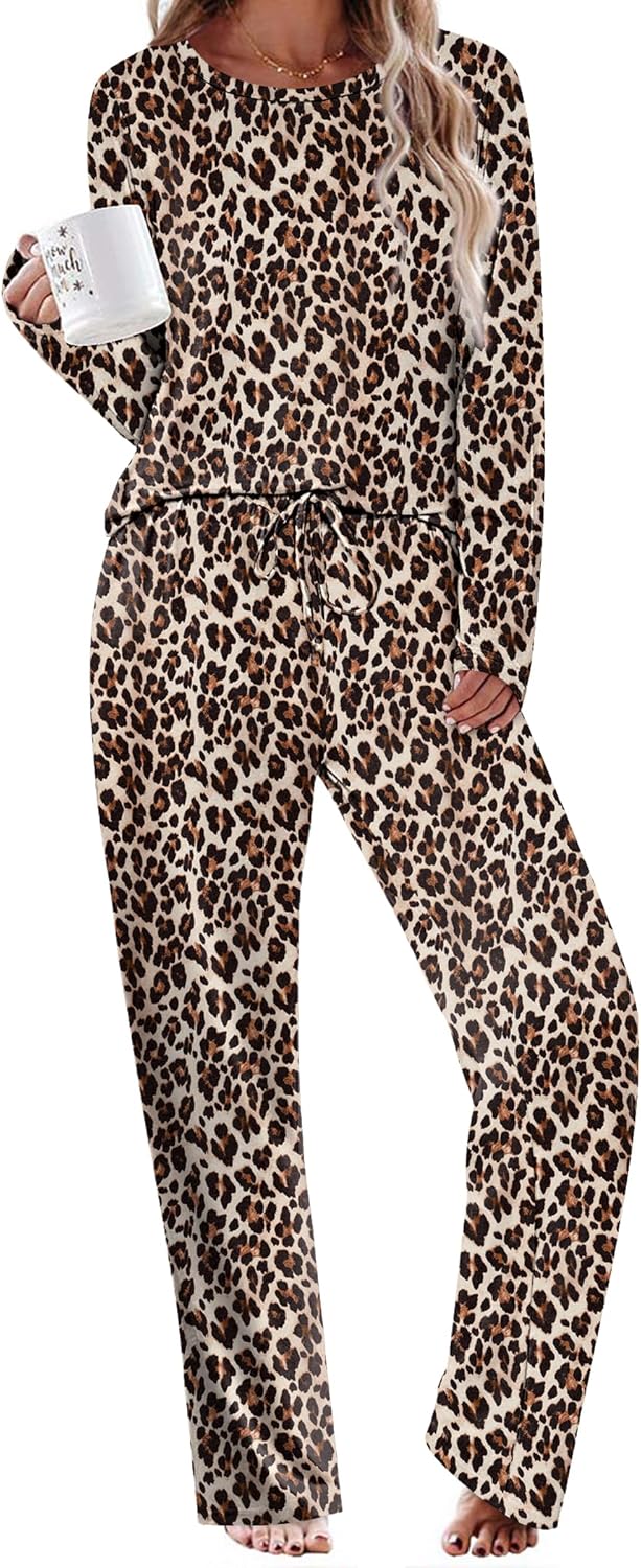 Ekouaer Womens Pajama Sets 2 Piece Sleepwear Soft Pajamas Long Sleeve Pjs Comfy Loungewear S-XXL