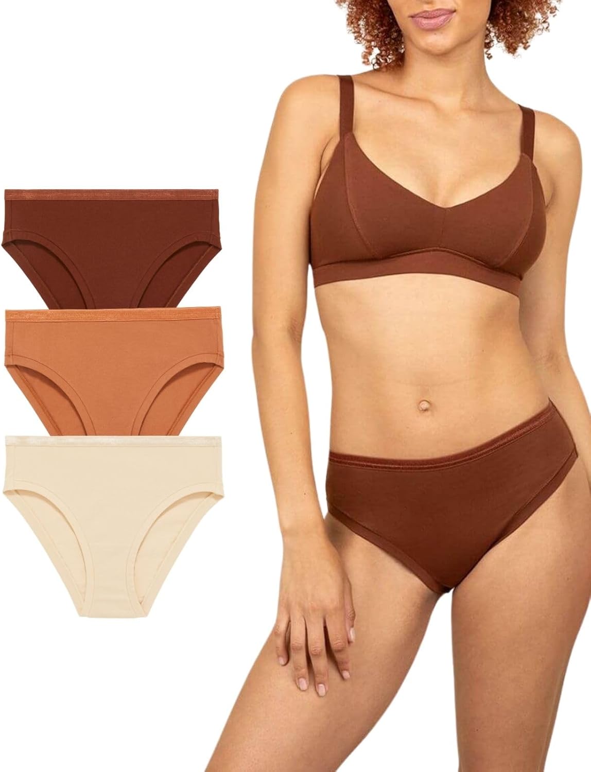 Subset Women's Organic Cotton Mid-Rise Bikini 3-Pack, Extended Sizes; 2XS-3XL, Natural Knickey Underwear, Breathable Undies